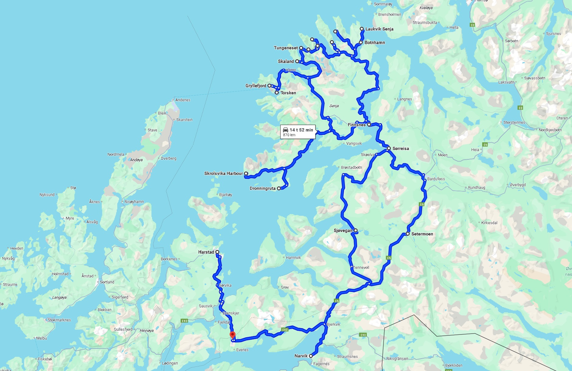 Det ble en høsttur med Isabel Aarnes. Vi leide bil og kjørte til fastlands-Norges nest største øy, Senja. Forsøkte å få med oss så mye som mulig i løpet av de fem dagene vi var her. Været var nydelig og vi fikk brukt alle dagene svært godt. Siste dagen var vi også innom Narvik og fastlands-Norges største øy, Hinnøya, for å besøke Harstad.