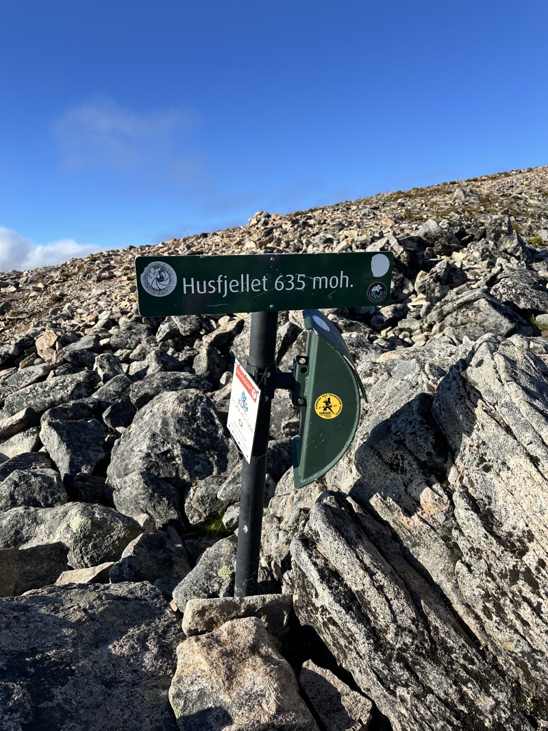 Gikk fra Montessori-skolen i Skaland. Syntes det var unødvendig å bruke penger på å bruke penger på parkering på parkeringsplassen til Husfjelletturen når det var gratis i resten av Skaland. Stemningen var god og været knall. Vi forserte raskt høydemetrene og fikk fantastisk utsikt da vi kom over tregrensa. Var noen våte myrpartier med gjørme i Sommardalen som Isabel satte lite pris på, men ellers perfekte forhold. Ikke så mange andre turister heller, så vi fikk stunden på toppen for oss selv. Nedturen gikk ganske radig. Utrolig fin tur.