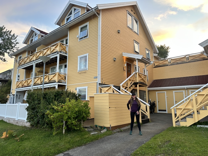 Etter fjellturen satte vi oss i bilen og kjørte til Husøy. Så oss litt omkring og tok noen bilder. Deretter kjørte vi siste bit av den nasjonale turistvegen til Botnhamn bare for å ha fullført den. Vi fortsatte videre helt til Laukvik og der sluttet vegen. Vi tok så riksveg 862 og 861 langs Gisundet til Finnsnes. Der leide vi en Airbnb-leilighet i Skolegata 28D av Hedda Henriksen. Og den var mildt sagt ikke klargjort for utleie. Vi gikk en tur og spiste på Burger King. Etterpå gikk Isabel tilbake til leiligheten mens Terje gikk en litt lengre tur i Finnsnes sentrum.