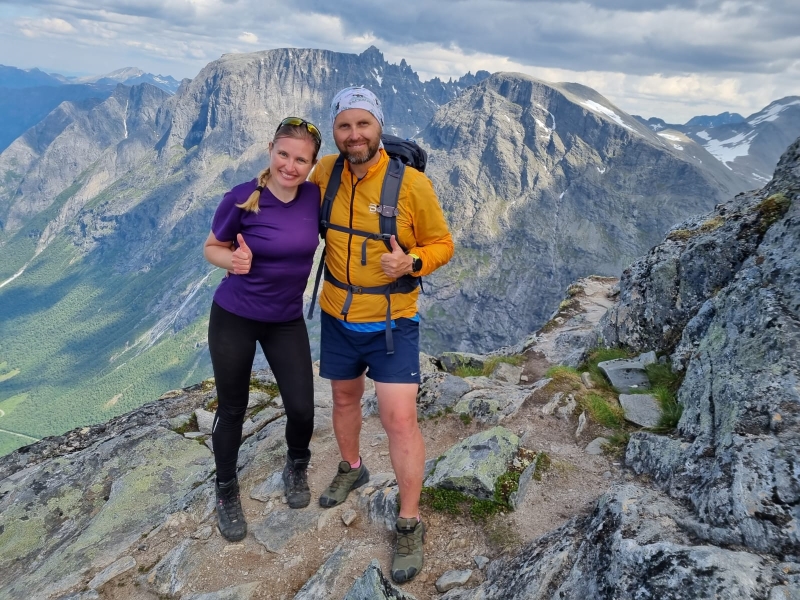 Kjørte opp til Sjoa søndag kveld og overnattet hos foreldrene til Isabel Aarnes. Vi sto opp tidlig og kjørte nordover til Trollstigen, Rauma hvor vi besteg Bispen (1462 moh).
